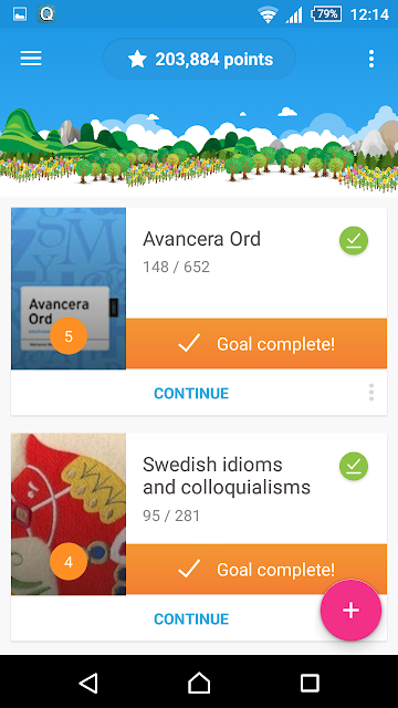 Wyższość aplikacji tego rodzaju nad tradycyjnymi fiszkami jest przede wszystkim taka, że znajdują się w naszych urządzeniach - nie trzeba zabierać ze sobą do kieszeni czy torebki plików karteczek albo pudełek z kartonikami. Nie ryzykujemy też, że jakieś "słowo" nam się zgubi, bo - dajmy na to -kot wepchnął je pod kanapę. Mnie przy fiszkach zawsze bardzo męczyło samo ich żmudne tworzenie. Sięganie po gotowe fiszki z wydawnictw też nie było dla mnie dobrym rozwiązaniem - na studiach najczęściej potrzebowałam uczyć się konkretnego słownictwa, występującego na przykład w konkretnym podręczniku. W fiszkowych aplikacjach możemy sami opracowywać bazy danych lub korzystać z tych, które stworzyli już inni użytkownicy. Memrise w porównaniu z testowanym przeze mnie wcześniej Anki wygrywa zdecydowanie przyjaźniejszym interfejsem, przejrzystością obsługi, większą różnorodnością ćwiczeń, służących zapamiętywaniu i obszerniejszą bazą kursów - w każdym razie jeśli chodzi o szwedzki.