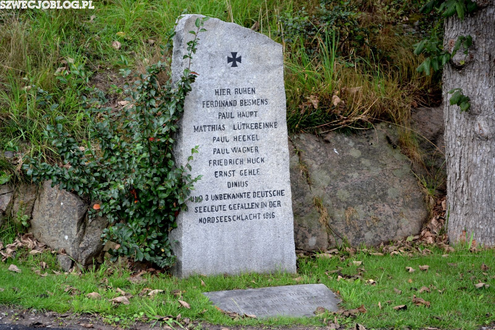 Nie byłabym sobą, gdybym nie skierowała się do części miasta tak mocno związanej z kryminałami jak... cmentarz. Udało mi się tu odszukać miejsca, które gdzieś kojarzyły mi się z książek, takie jak miejsce upamiętniające niemieckich marynarzy czy nagrobek ojca Camilli Läckberg, który autorka opisała w jednej ze swoich powieści. Duże wrażenie zrobił na mnie prosty, biały krzyż, poświęcony "nieznajomemu z morza", gdzie obok kwiatów leżały pokryte mchem muszle.